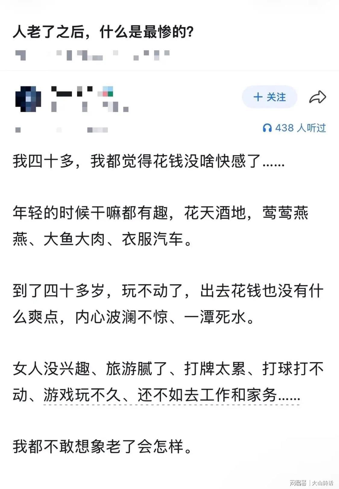 - 不得不说,这位四十多岁网友的感慨,看似无病呻吟,却道破了很多人中年以后的真实困境:人老了最惨的,不是没钱没病,而是对一切都失去了兴趣,活着只剩麻木。
